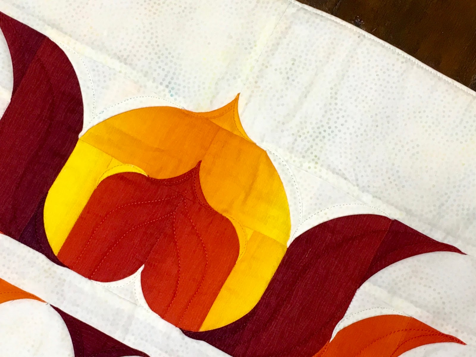 Initially, when I created this lotus designs, I started out using separate light, medium and dark fabrics, however, once I saw these vibrant gelato fabrics I wanted to find a way to use them in my design. Each lotus blossom is made from just one of these gelato ombre fabrics, using the variation within each fabric as the light, medium or dark part of the flower.(The original light, medium and dark option will also be described in the pattern).